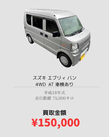 買取実績 スズキ エブリィ バン 買取 買取金額: 180,000 円 スズキの定番の軽バン、エブリィ買取させて頂きました。 配送でお使いの軽バンも即日現金買取承ります。 走行距離が多い過走行車もしっかりお値段お付けさせて頂きます。 けいと軽トラ軽バン買取なら専門店の軽トラ買取道場京都までお任せください。 /blog/blog_comments/captcha/49708297 /blog/blog_comments/get_token ≪ ダイハツ ハイゼット 買取 ホンダ バモス 買取 ≫